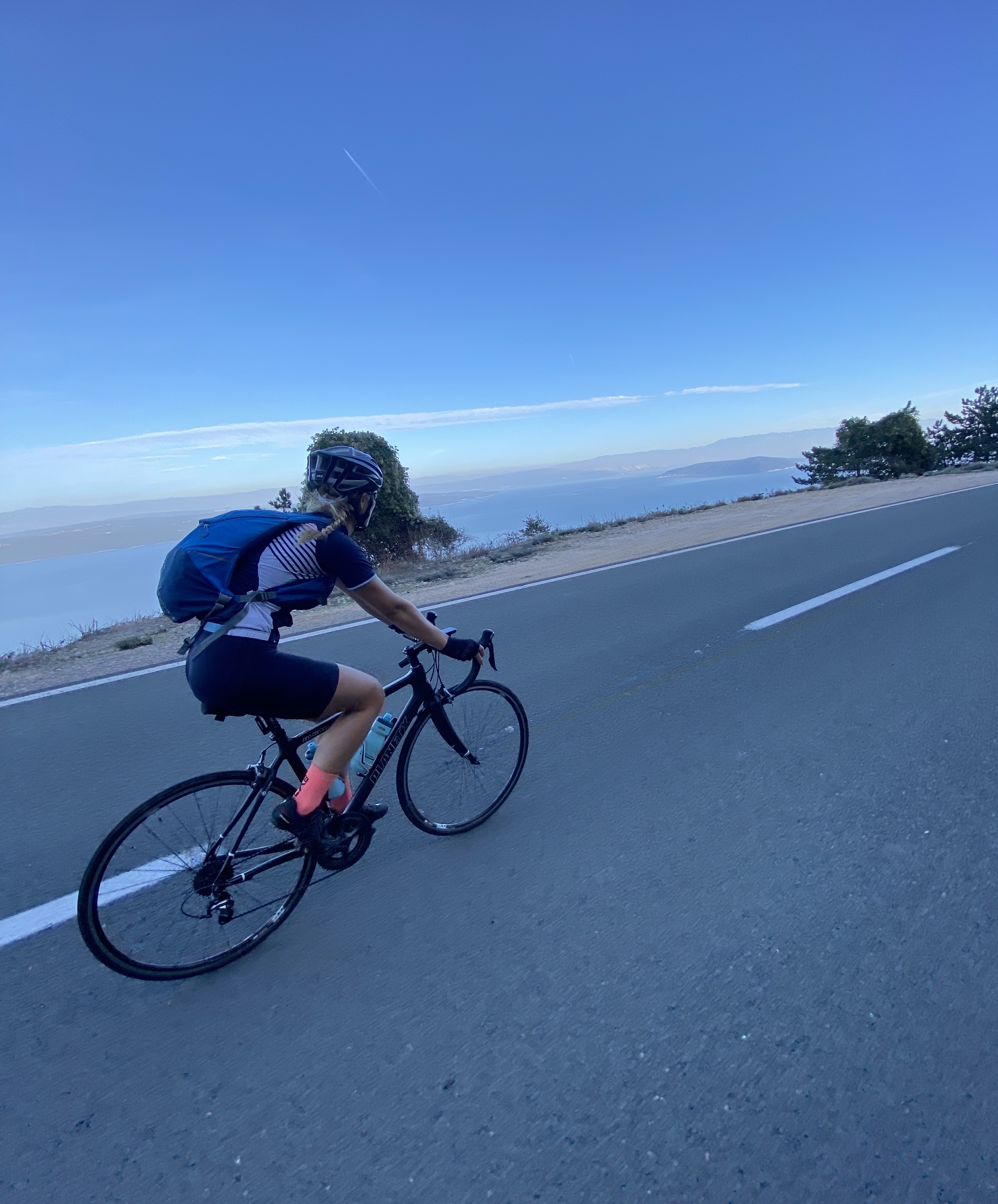 Our time on Cres has come to an end and we have just the ascent up to the panoramic view from day one and the descent to the ferry, around 1-1.5h of cycling. We have lovely warm weather once again and halfway up are surprised by a display of vultures around 12 of them, circling beside the climb, we spend a moment here staring, taking photos and when we begin smelling hints of something dead nearby to attract them, it’s swiftly back to the cycling! We leave and make our way to the port and after a 20minute journey and a few km of climbing on the other side, we make it back to home (the van).
